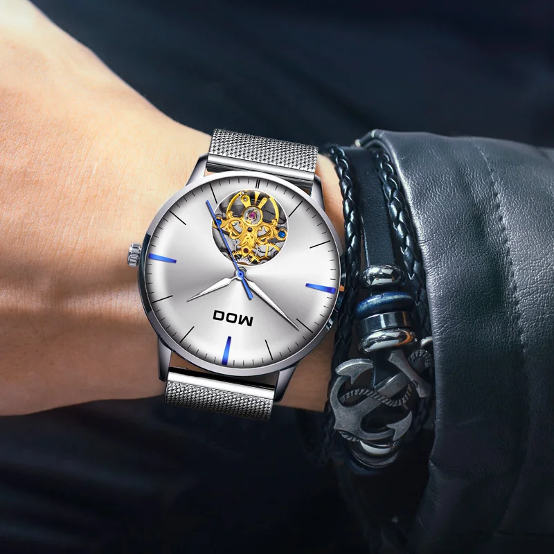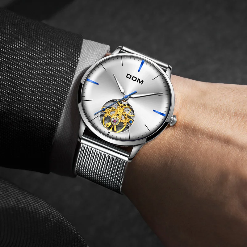 Men Tourbillon Automatic Mechanical Watch Luxury Fashion Casual Brand Steel Men Sliver Watches Relo