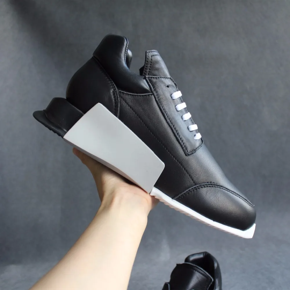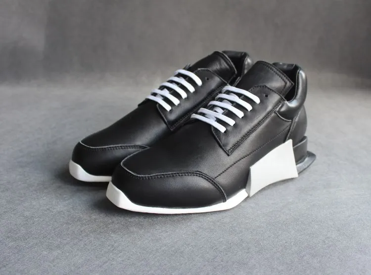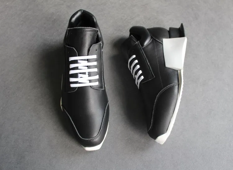 Black white Mens fashion Thick bottom casual sport shoes breathable leather slip-on outside travel