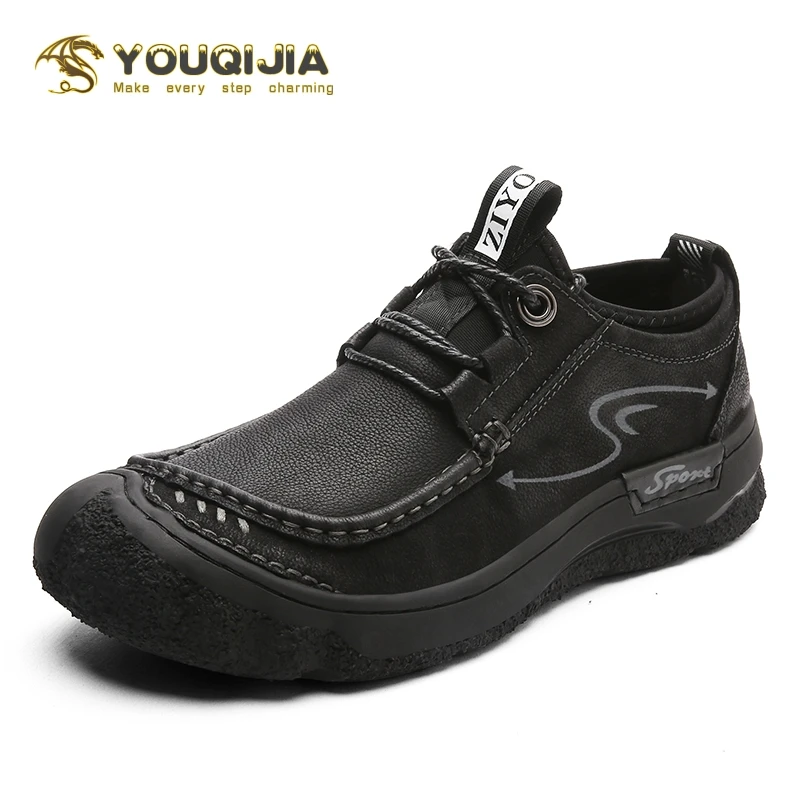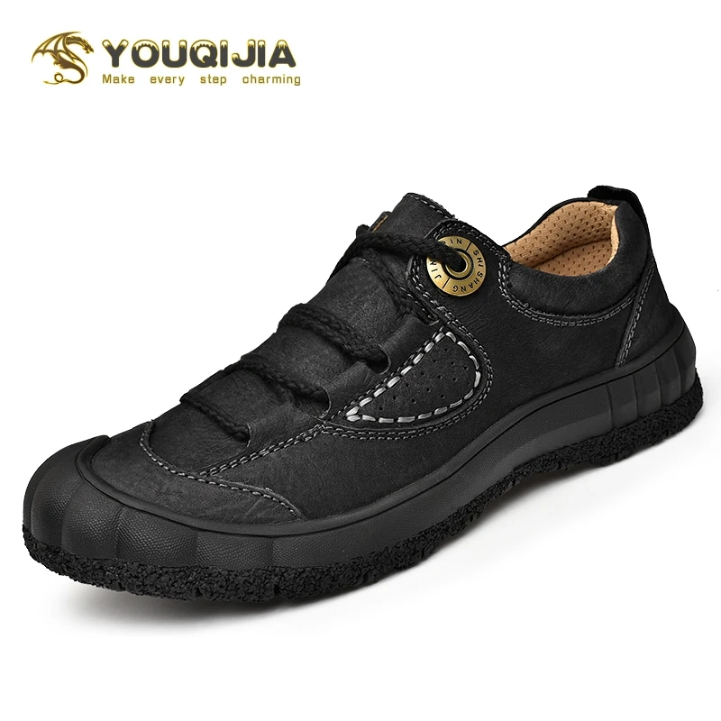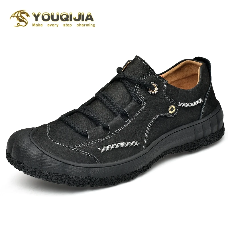 Outdoor Men Casual Shoes Handmade Cow Leather Hiking Shoes Leisure Wear Resistant Rubber Shoes Autu