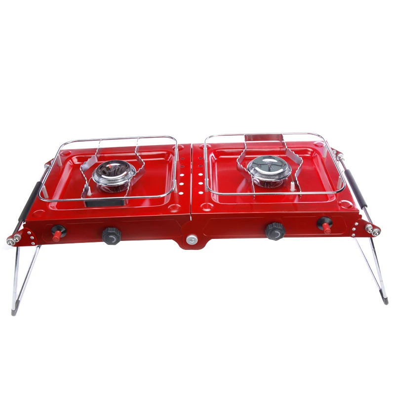 Outdoor Gas Stove with Double Burnes Stainless Steel Camping Folding Burners Grills Gas Cooker for
